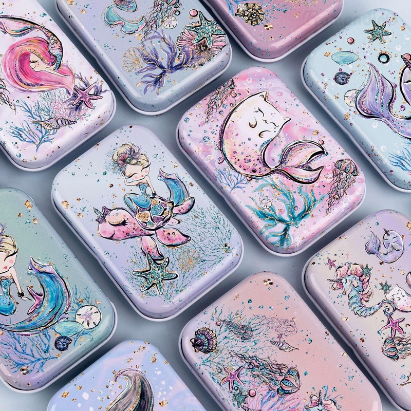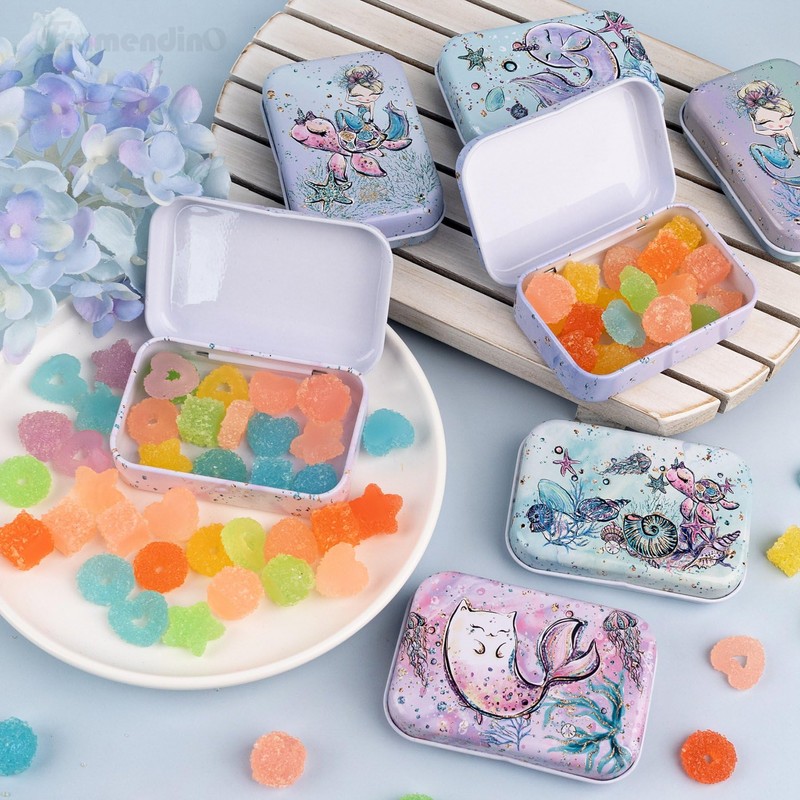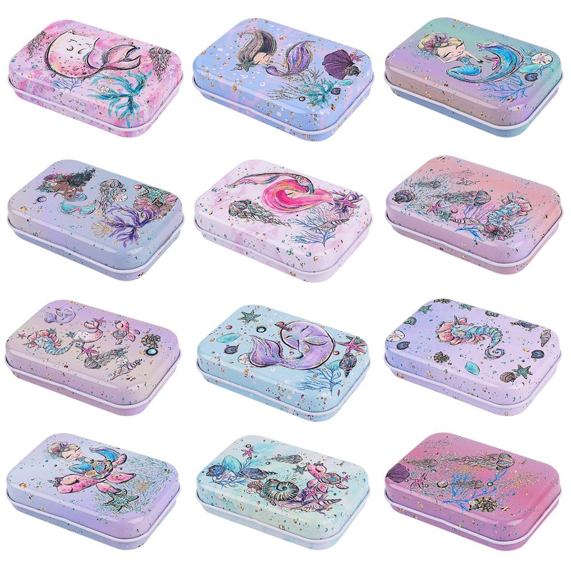 Framendino, 6 Pack Mini Tinplate Boxes Mermaid Tin Trinket Jewelry Coin Box Small Containers with Lid for Bead Storage Case (Random Color)