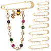 Framendino, 8 Pack Rhinestone Safety Pin with Loops for DIY Crafts Jewelry Making Gold 4 Sizes