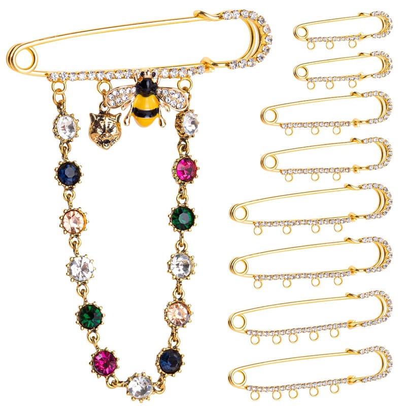 - Quality: The rhinestone safety pins with loops gold made of metal material, not easy fade and break