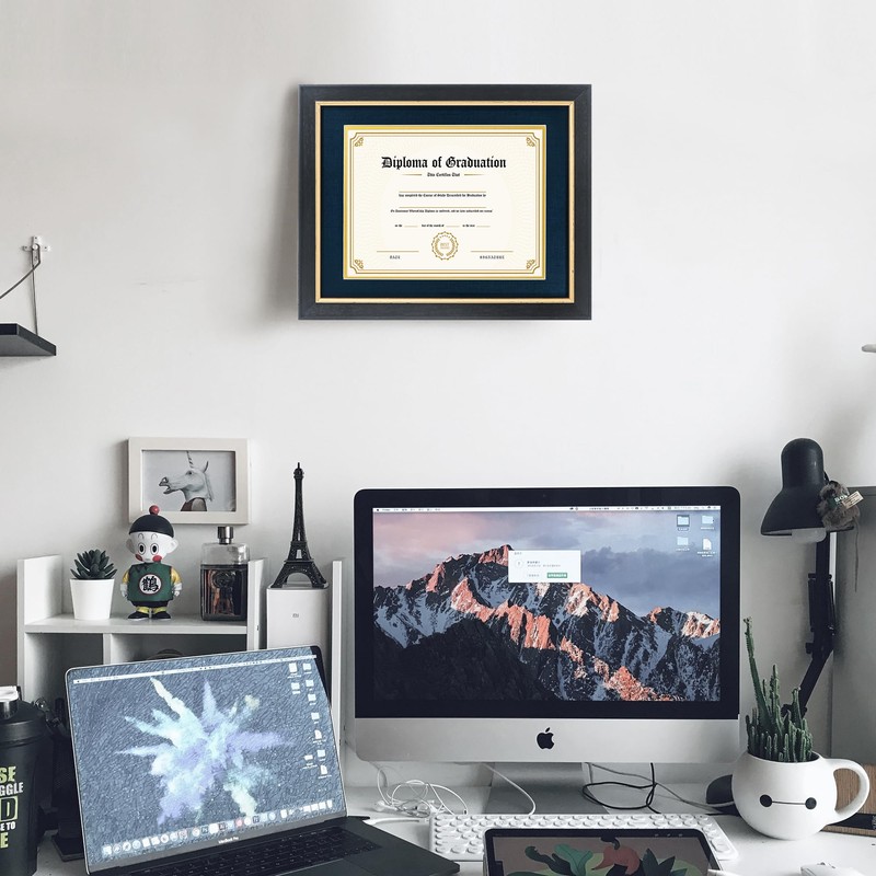- 【MATERIAL】♣The frames are made of high quality white wood with a nice black finish. Durable high definition & UV protction acrylic protect your documents from dust, moisture and scratches, make your certificates great for years.