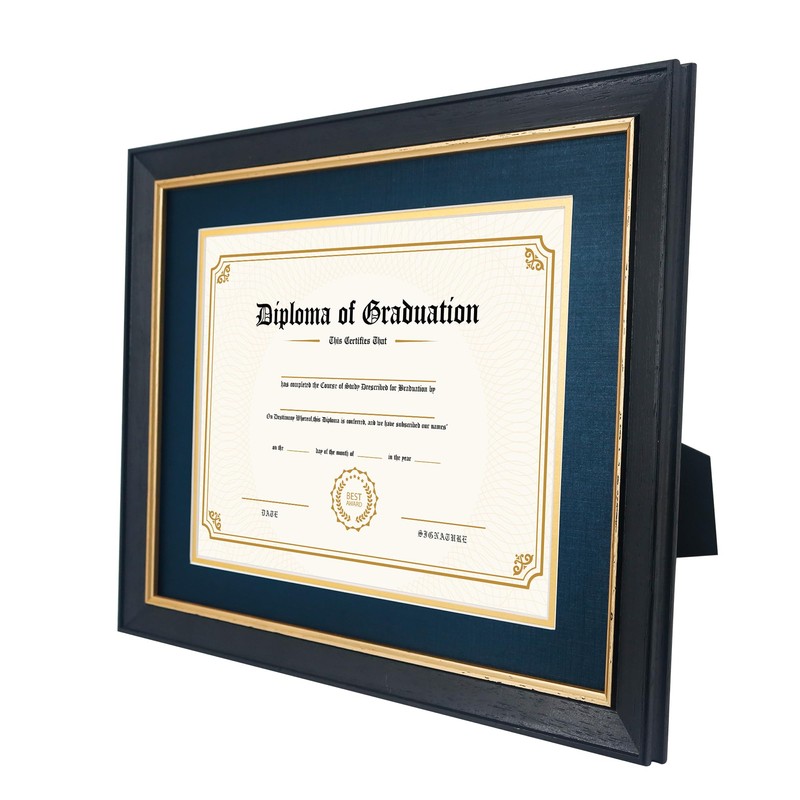 - 【SIZE】▩Made to display 8.5" x 11" documents with navy over gold double mat and 11" x 14" diplomas without mat. 1.2" wide and 0.8" thick molding. Overall size is 12.8" x 15.8" x 0.8".