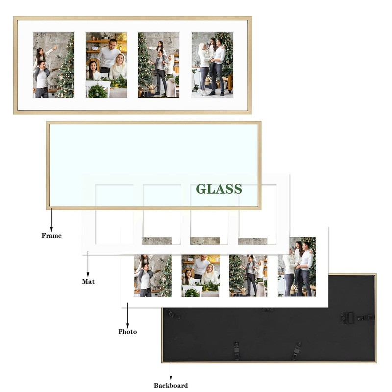 - Usage: The 8x20 Metal Photo Frame with 4 Slots Mat For 4x6 Inch Collage Pictures. Great Gifts For Christmas, Birthday, Anniversary, Housewarming, Mother's Day, Father's Day and Other Kinds of Festival