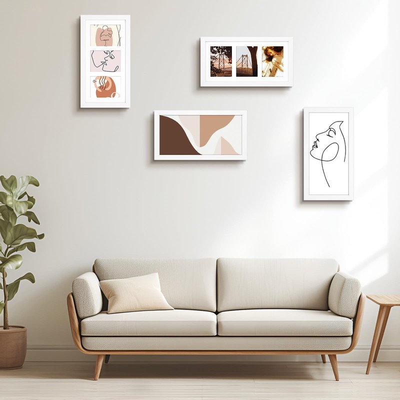 - Modern Design: Set Of 2 White Color Wooden Frames, Includes A White Mat For Three Openings (Opening Size: 4.5X6.5) Or 9X18 Photographs (Without Mat)