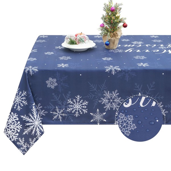 FRAMICS Christmas Tablecloth, Snowflake Table Cloth Waterproof Navy Blue Tablecloths for Dining Kitchen Winter Holiday, Spill-Proof Table Cover for New Year Party Decor, Rectangle 60x120 Inch, Blue