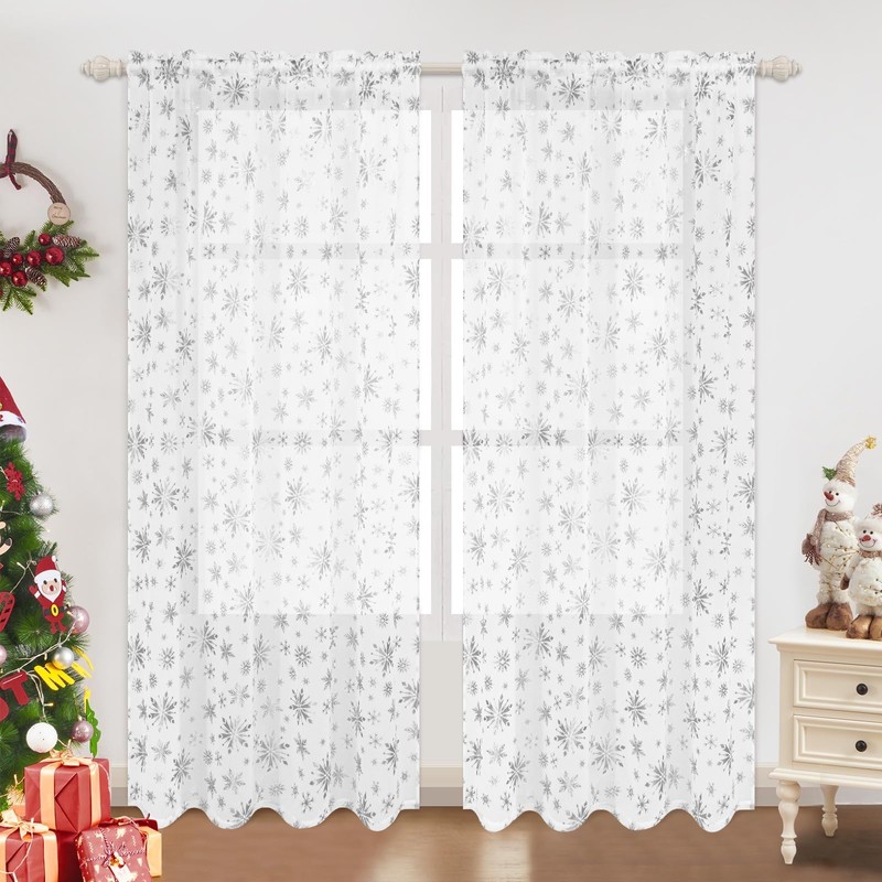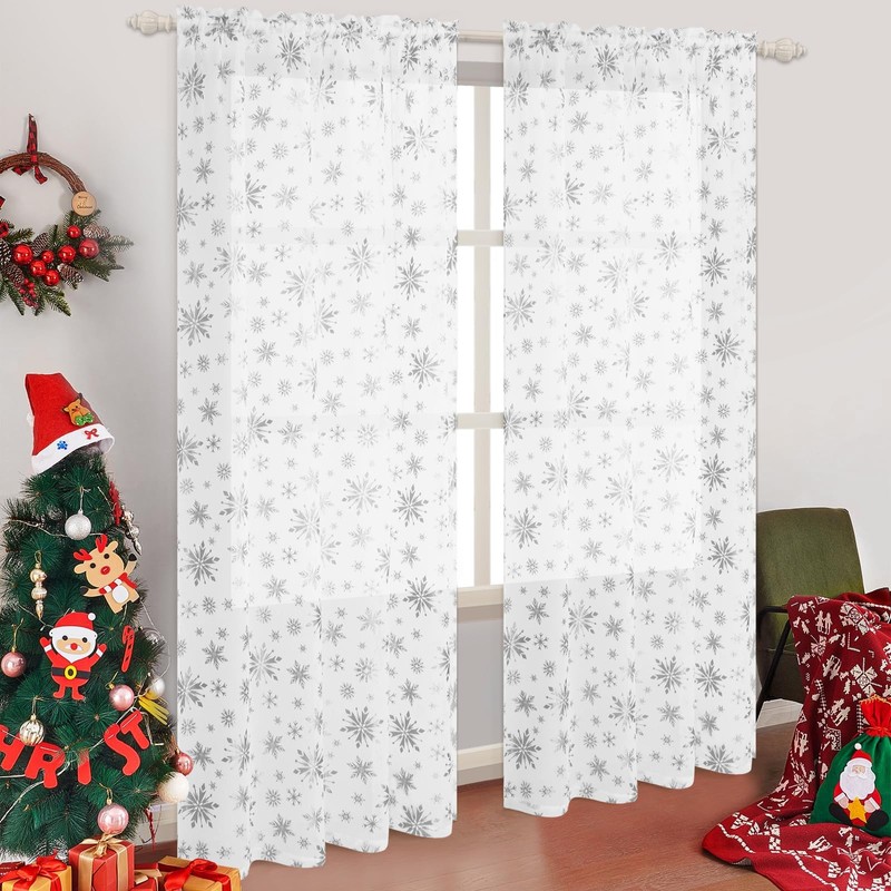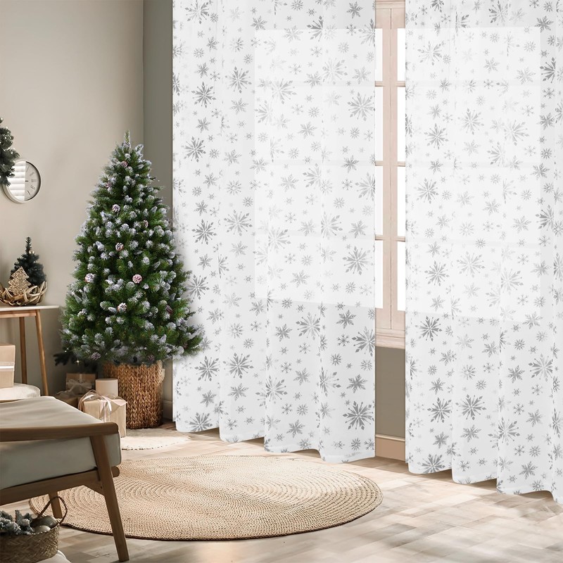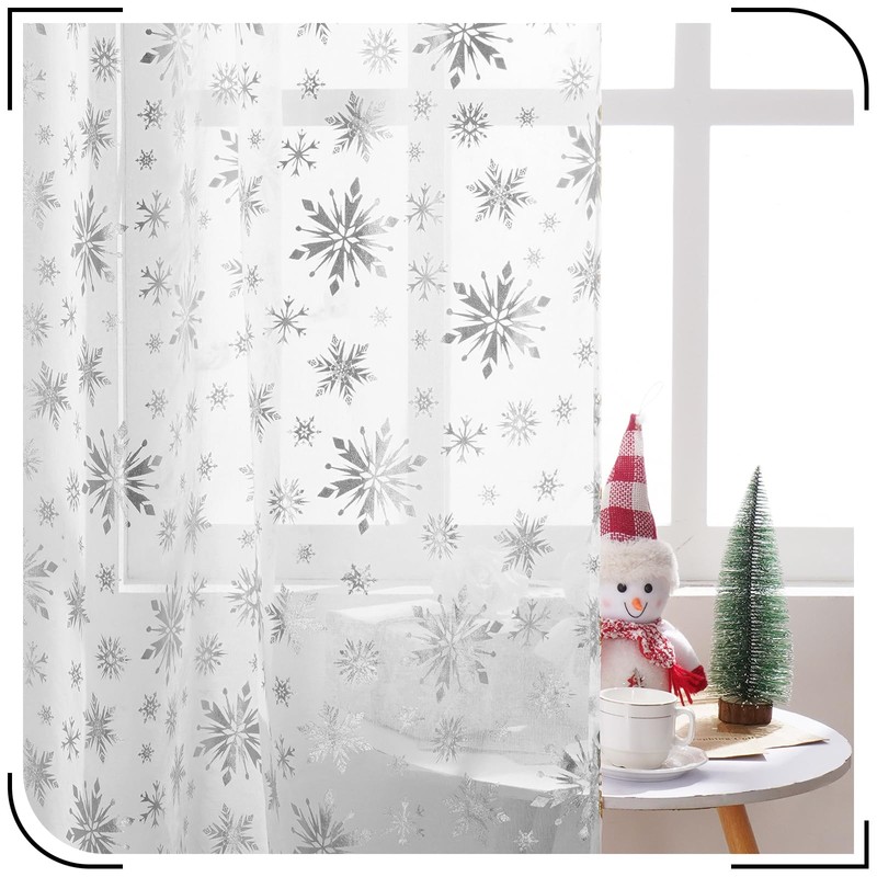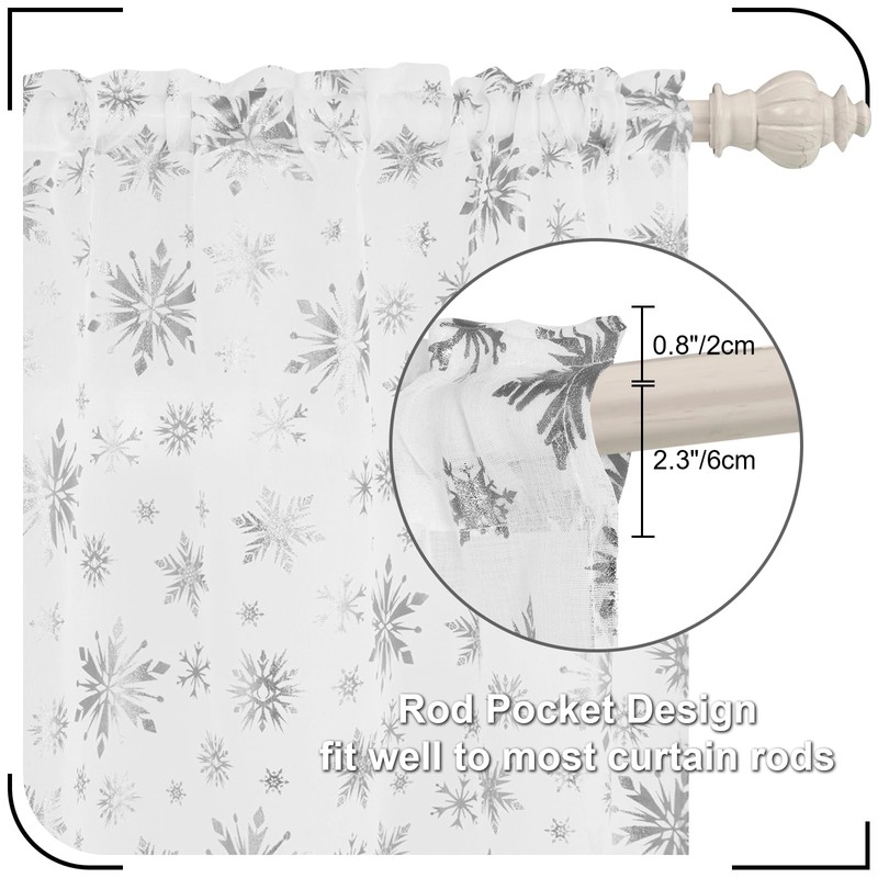 - Christmas Snowflake Foil Print Design: Our Christmas sheer curtains for living room are designed with foil-printed snowflakes. You will feel the atmosphere of Christmas with our Christmas window curtains.