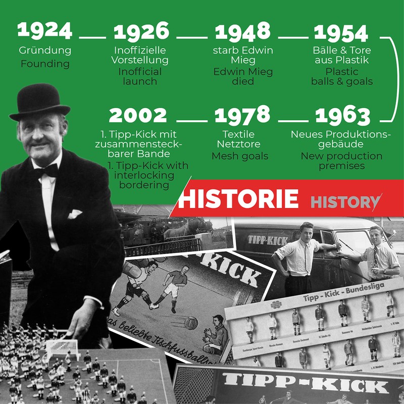 - TIPP-KICK: The traditional company from Germany. Since its founding in 1924, we have stood for quality and have always provided joy for young and old with our products.