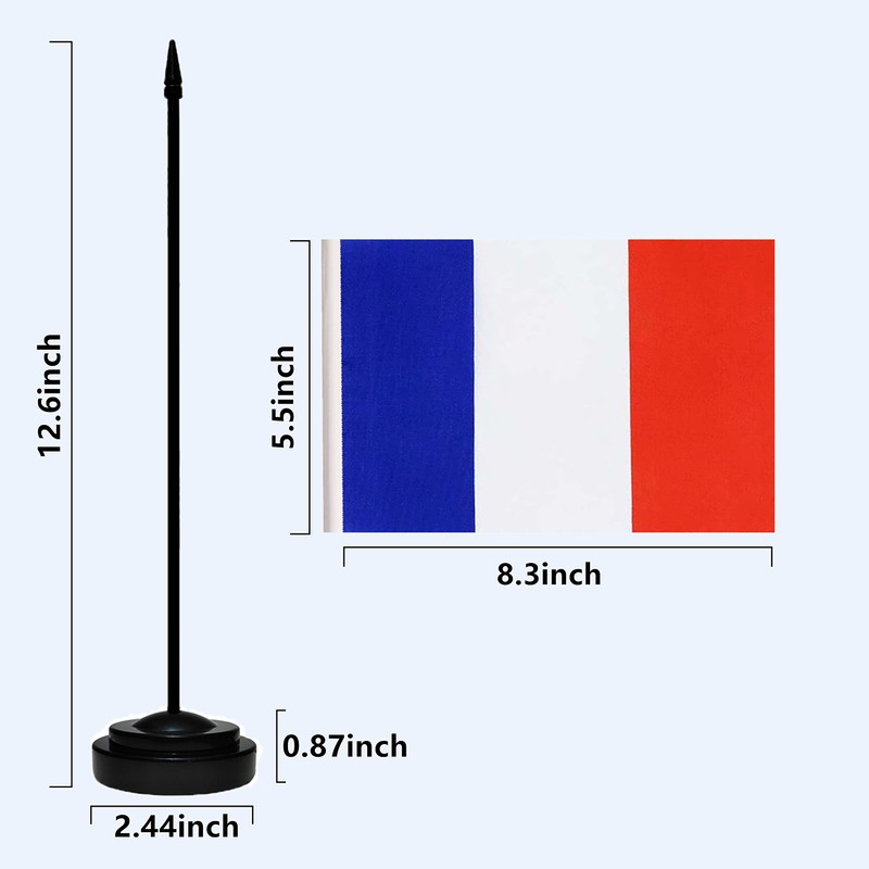 - Speciflcation: plastic flag base:13 inches tall; flag size:8.2" x 5.5"(W xL).Quantity: 2 pack France French Miniature Deluxe Table flags.