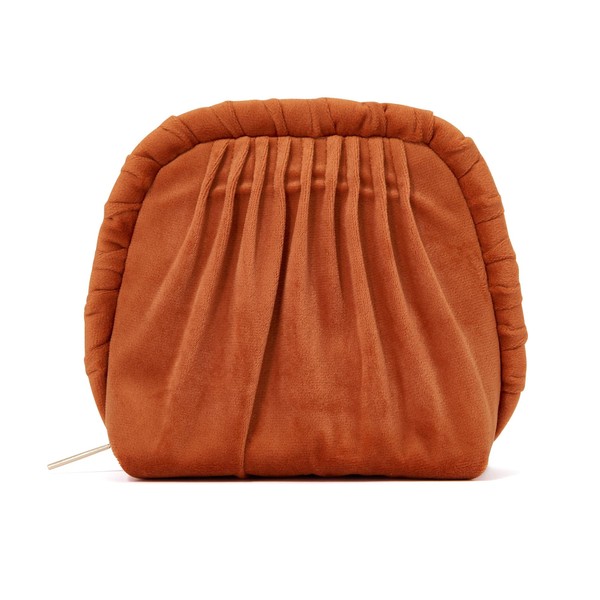 This pouch has a chic design with tucked pleats on glossy velour fabric.