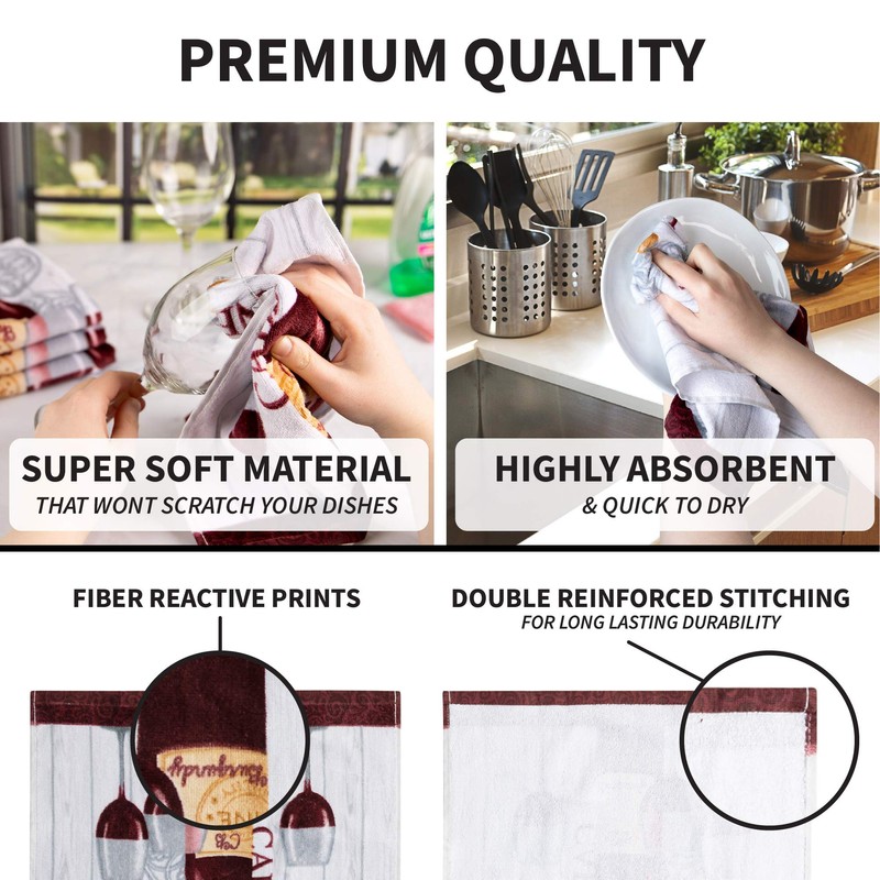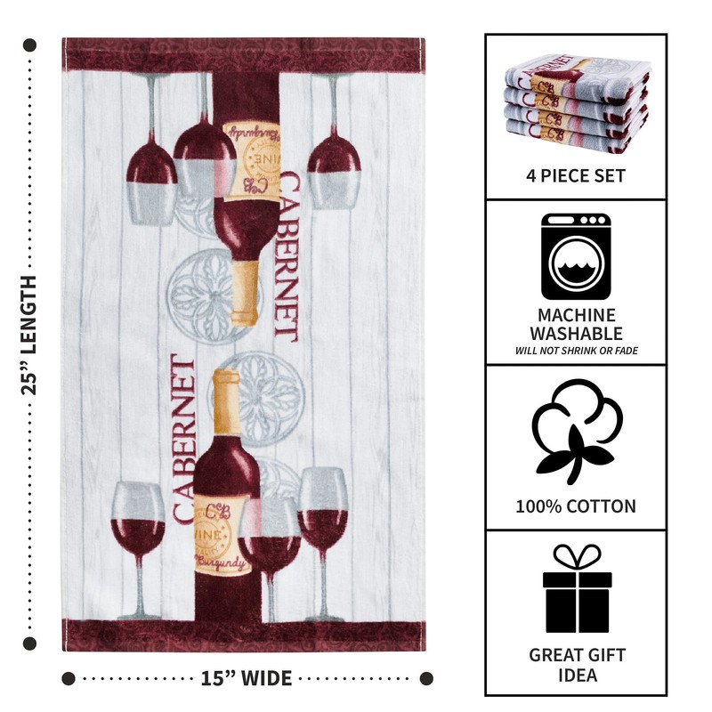 Franco Kitchen Designers Decorative Tea Towels, Set of 4, Soft and Absorbent Cotton Tea Towels, 38 x 63.5 cm, Rustic Wine