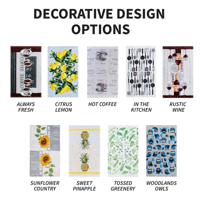 - DECORATIVE PATTERNS - Kitchen Designers by Franco napkins feature a collection of fun and colorful designs to compliment your kitchen decor essentials for each season. With bold fiber responsive prints that make a stylish statement, these towels make great holiday and housewarming gifts.