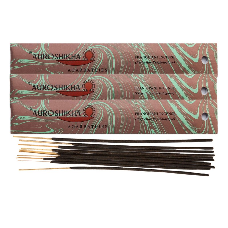 - Auroshikha Marbling ~ Frangipani ~ A heady, sweet and strongly floral scent enhanced by traces of flowery ylang ylang and citrus geranium. ***** Now also available as multipacks for a better value *****Incense made by Auroshikha is regarded as some of the finest incense in the world. Auroshikha has captured the light, delicate fragrances of nature, lovingly made at the Sri Aurobindo Ashram in Pondicherry.