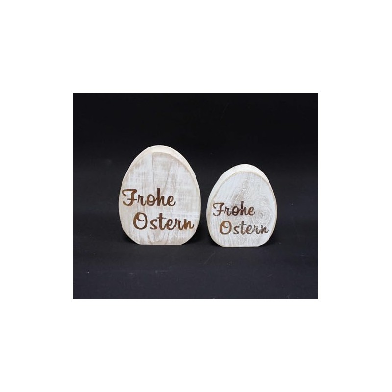 FRANK FLECHTWAREN Decorative Egg Happy Easter, Set of 2, Wood, Whitewashed Dimensions: Height 14 cm, 16 cm