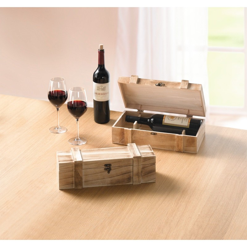 FRANK FLECHTWAREN Gift Box, Wooden Chest Rustic, for 1 Bottle, Presentation Case, Gift Box