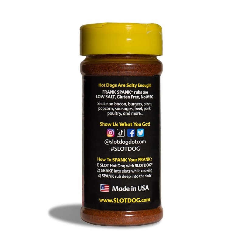 - LOW SALT - Hot Dogs Are Salty Enough! FRANK SPANK™ has 1/3 the salt (40mg per 1/2tsp.) compared to many BBQ rubs