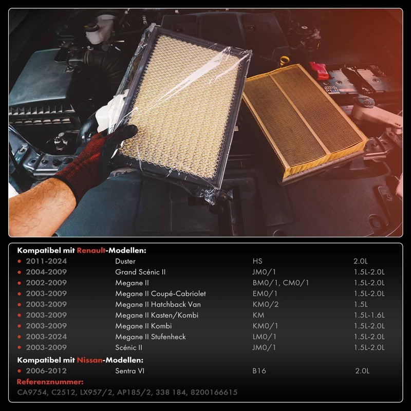 - Frankberg Air Filter Engine Filter Insert Compatible with Sentra VI B16 Duster HS Grand Scénic II JM0/1 M.eg.an.e II BM0/1 CM0/1 Scénic II JM0/1 Replace#