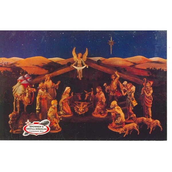 FRANKENMUTH MICHIGAN BRONNERS NATIVITY SET ON POSTCARD (CD#22*)