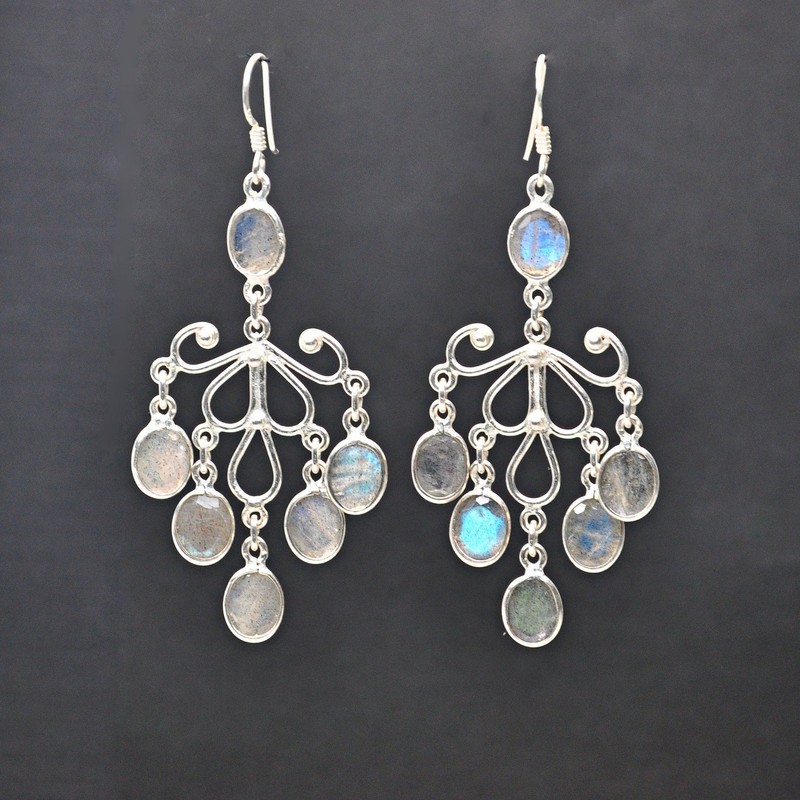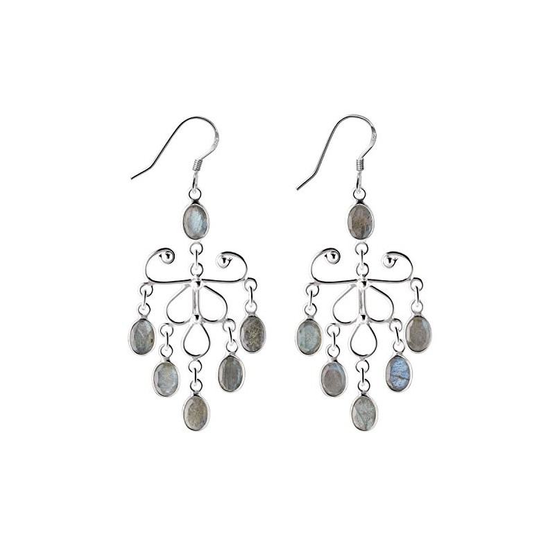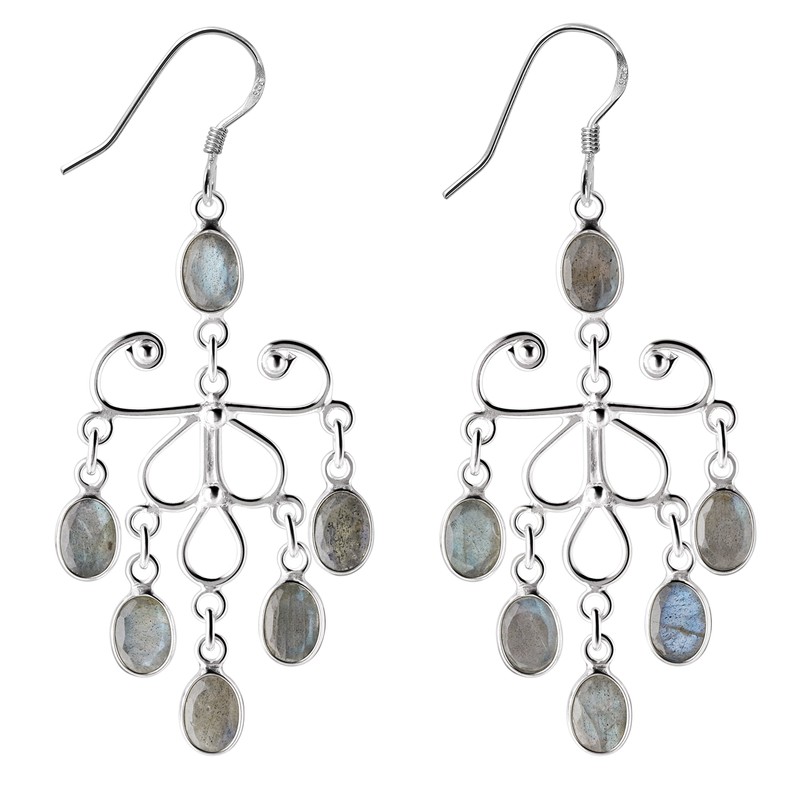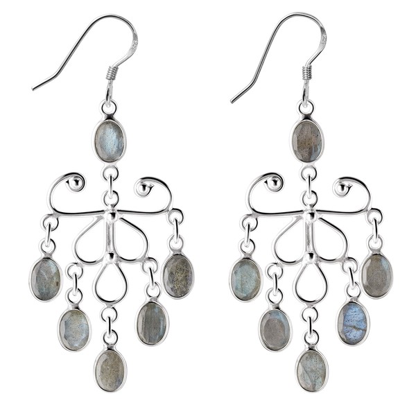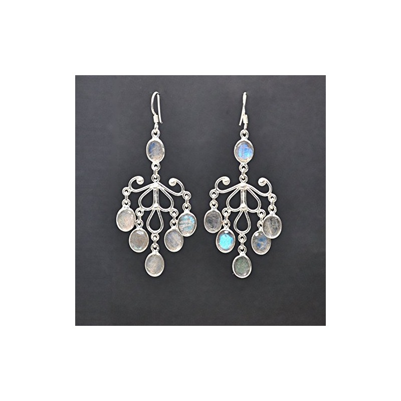 Franki Baker Large Labradorite Gemstone and 925 Sterling Silver Chandelier Statement Drop Earrings 6.5cm