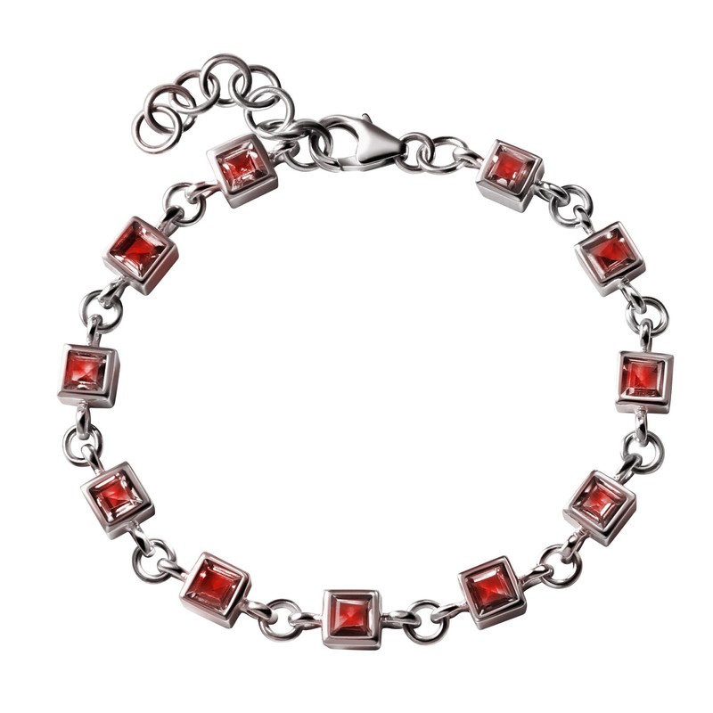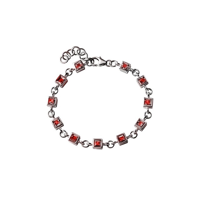 Franki Baker Sterling Silver Square Cut Garnet Gemstone Tennis Bracelet