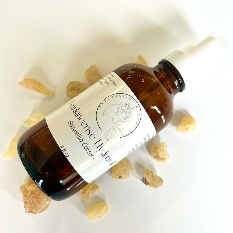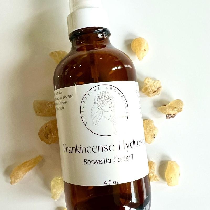 Frankincense Hydrosol | Boswellia Carterii | Stimulating | Grounding Botanical Name: Boswellia Carterii Method - Steam Distillation Plant Part - Resin Origin - Somalia Aroma - Captivating, Woodsy with notes of citrus If you love Frankincense as much as we do than this hydrosol is for you! Frankincense, Olibanum, is a sacred incense that has many benefits and uses. This Frankincense Hydrosol is produced in Somalia where they ethically wild harvest the resin and then distill it to produce the hydrosol. Frankincense Hydrosol is highly beneficial for the skin. Frankincense is said to assist with hydration, keeping the skin radiant and many more. The aroma is much like the essential oil but lighter. It has woody, citrusy notes and smells divine. Frankincense is also wonderful for the calming and grounding us and can support our inner well-being. The 2oz and 4oz hydrosols come in an amber glass bottle with a white fine mist sprayer.