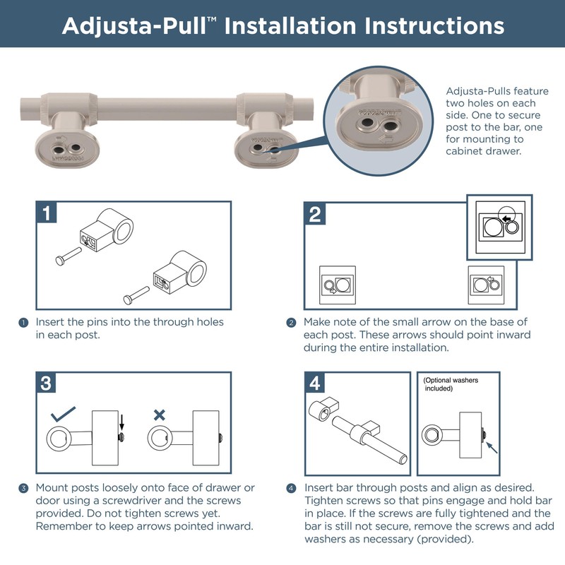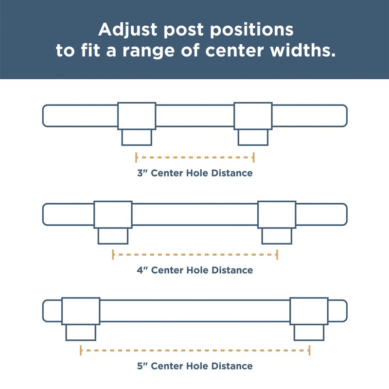 - MEASUREMENTS: Center to center screw mounting is adjustable from 1-3/8 in. up to 6-5/16 in. (35-160 mm)