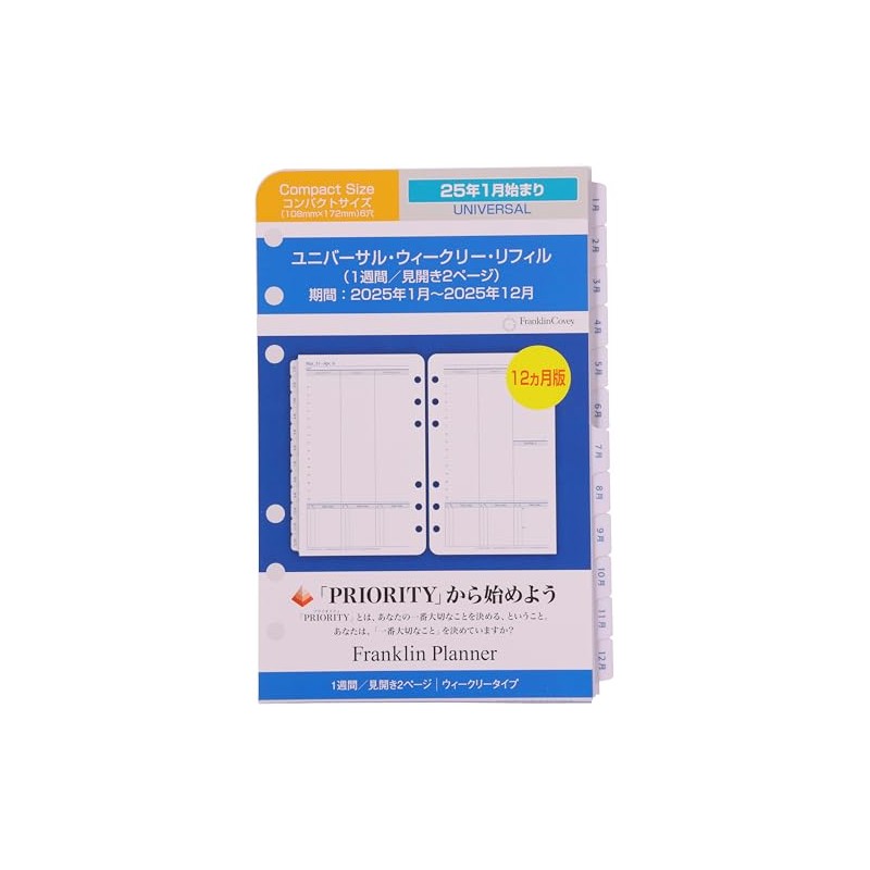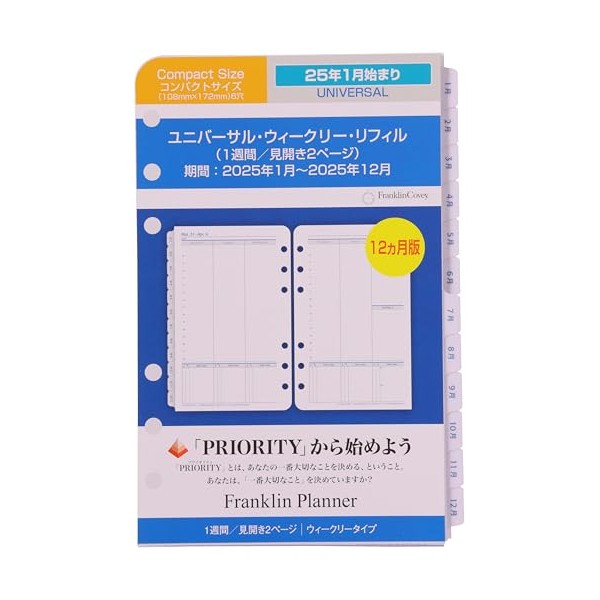 Franklin Planner 86375 Universal Weekly Refill, 12 Month Edition, Begins January 2025, Compact