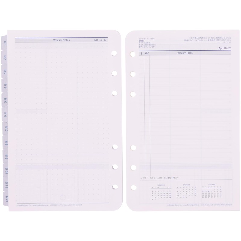 Franklin Planner 86606 Universal Weekly Refill, 12 Month Edition, Starts January 2026, Compact