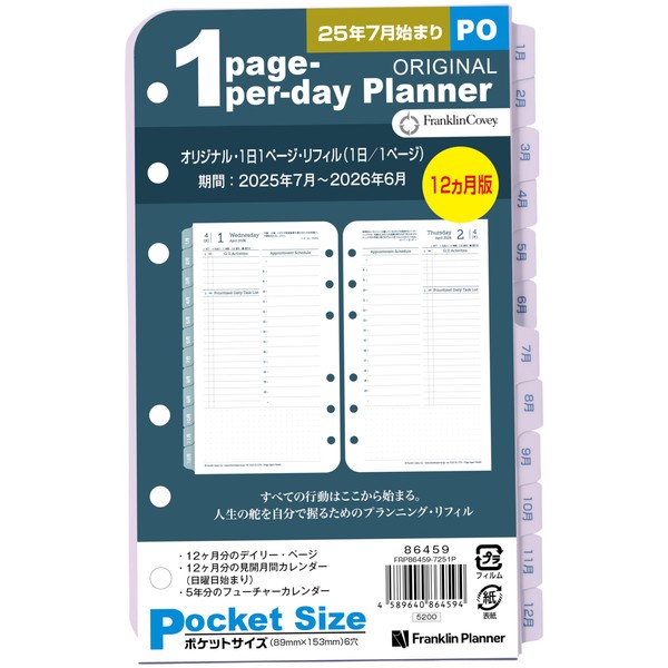 Franklin Planner Original 1 Page Daily Refill 12 Month Edition Begins July 2025 Pocket 86459
