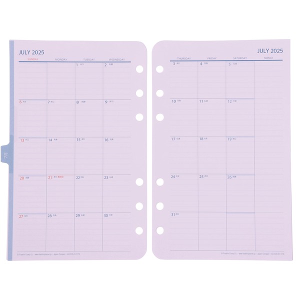 Franklin Planner Original Monthly Calendar Begins July 2025, Starts Sunday, Compact Size 86466