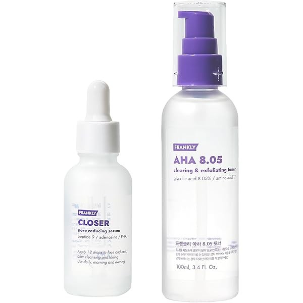 FRANKLY Pore-Perfecting Duo : Closer Serum & AHA 8.05 Toner | Pore Minimizer, Anti-Aging, Glycolic Acid & Peptide Formula | Smooths Skin Texture & Boosts Radiance | Korean Skincare Set