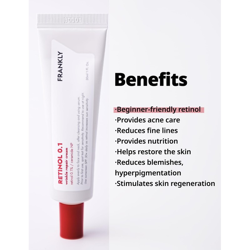 FRANKLY Retinol 0.1 Cream - Beginner Retinol | Anti-Aging, Rejuvenation, Skin Lifting & Restoration | Acne-Prone Skin | Enriched with Ceramides & Natural Ginseng | Made in Korea 1.01 fl. Oz.