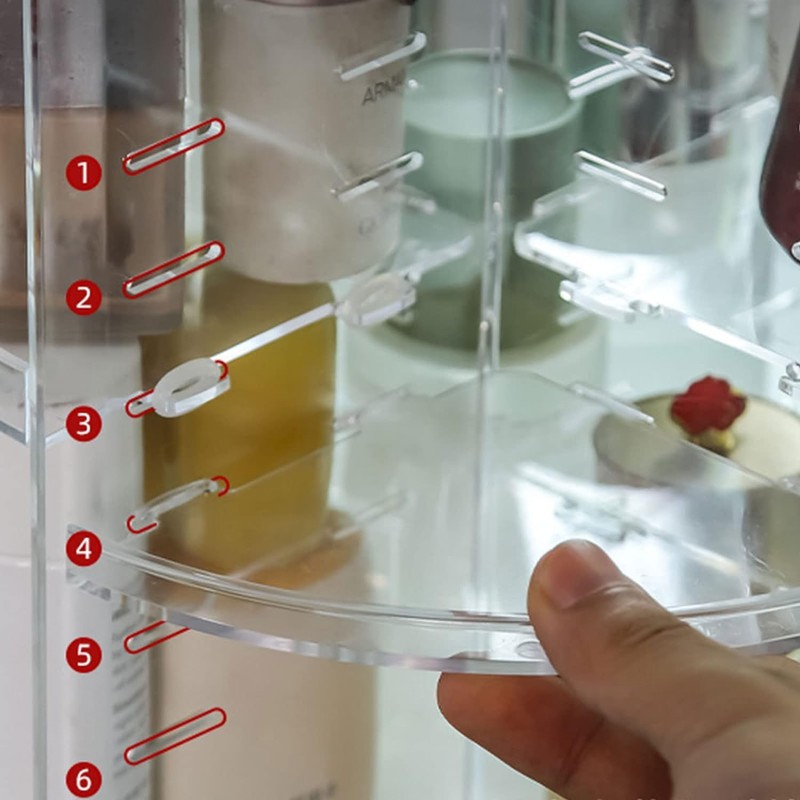 • 🛡️ Durable Material: Crafted from durable PS material, this makeup organiser is built to withstand daily use. Easy to assemble and disassemble, it offers both functionality and longevity. The transparent design allows you to see your cosmetics at a glance, enabling quick retrieval. The elegant acrylic material adds a touch of sophistication to your vanity.