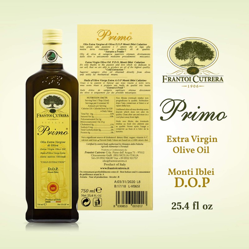 - Primo is obtained using only the early green harvest of the single variety Tonda Iblea olives and is cold extracted. The olives are cold pressed within six hours of being picked. The olives for Primo are organically farmed.