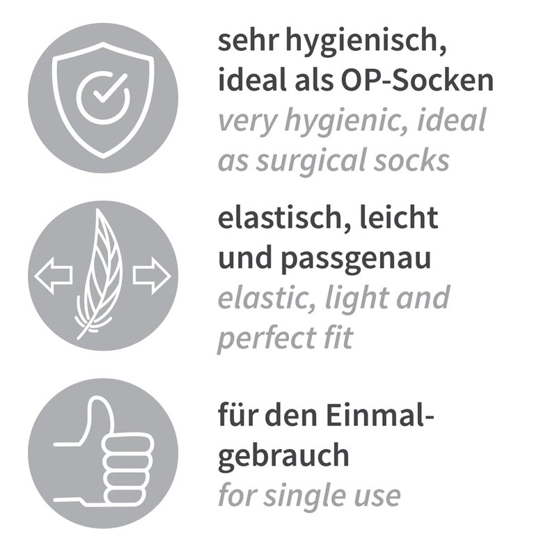 - Hygienic protection: disposable socks made of 100% polyamide, breathable, stretchy and lightweight - ideal for hospital, care, food industry and many other areas.