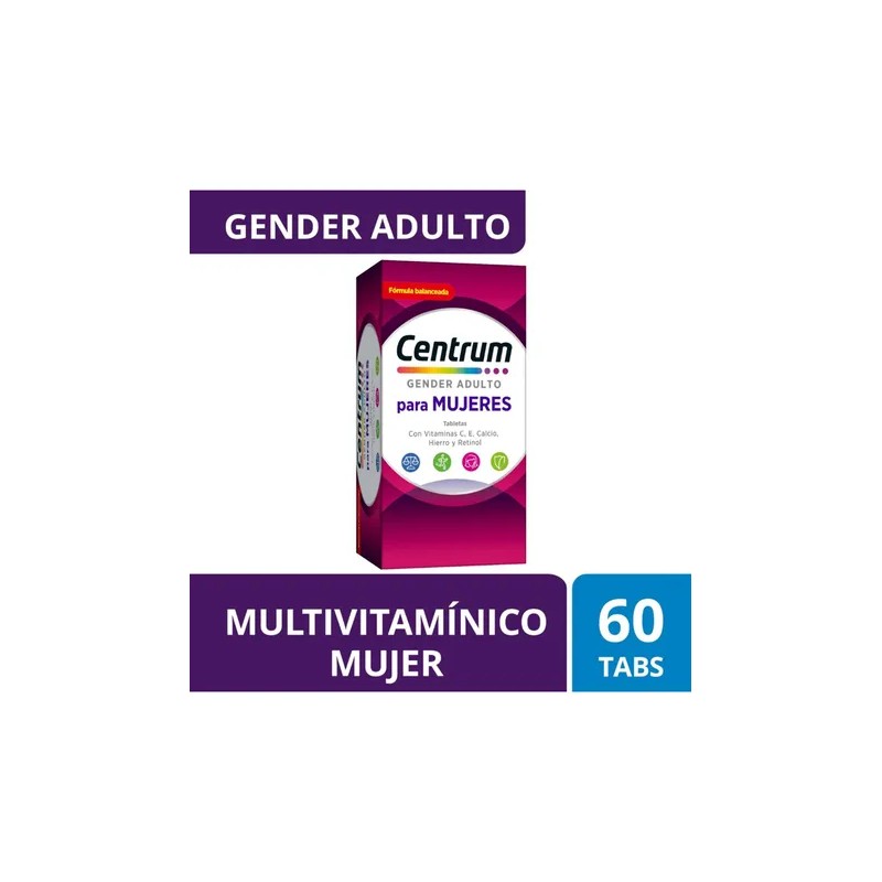 Frasco Multivitamínico Centrum Mujer con Vitamina C Vitamina E Calcio Hierro y Retinol 60 Tabletas Sin sabor