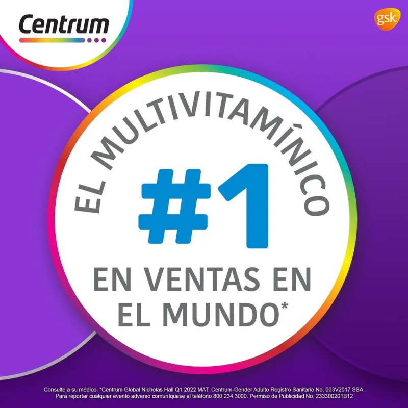 Frasco Multivitamnico Centrum Mujer con Vitamina C Vitamina E Calcio Hierro y Retinol 60 Tabletas Sin sabor