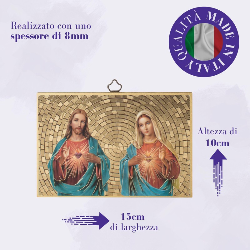 Fratelli Bonella - Religious Picture for Bedroom, Heart of Jesus and the Immaculate Heart of Mary and Blessing - MDF Poplar Picture - Religious Picture Bedroom 8 mm x 10 cm x 15 cm