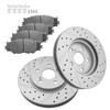 - Improved Braking Performance: Drilled/slotted rotors dissipate heat/expel debris; brake pads deliver superior stopping power. Shorter distances, consistent braking in any weather