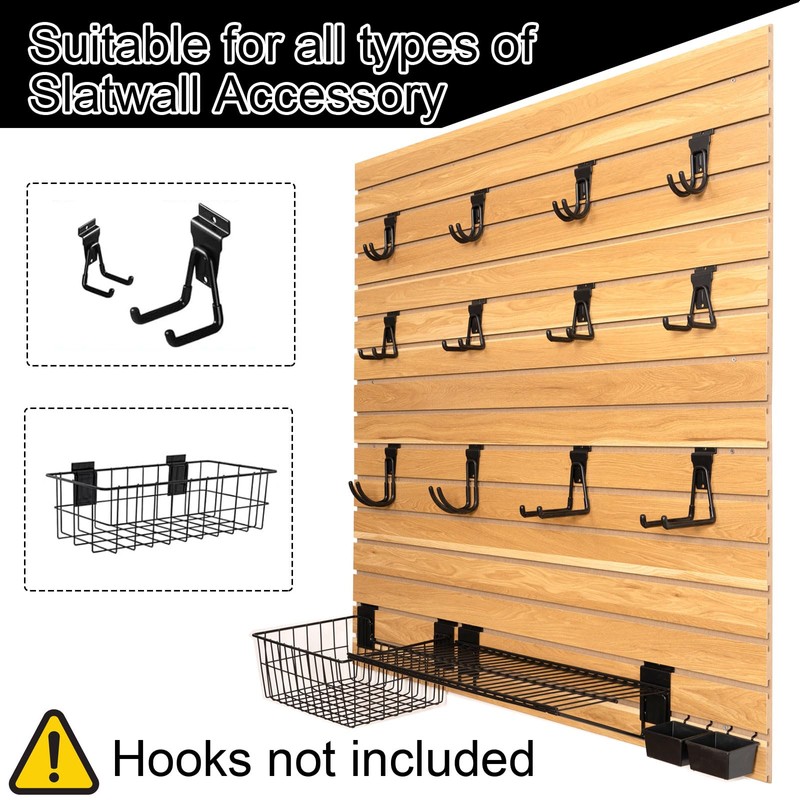 - Organizer Your Space: Designed for lightweight storage solutions, these aluminum-free strip MDF slatwall panels hold up to 100 lbs/panel and 25 lbs/point hook, providing rugged, space-saving organization for jewelry, apparel, toys, and more.3-inch slot spacing ensures compatibility with standard fittings and adapts to changing storage needs. Reconfigurable layout allows you to create tailored storage systems that maximize space efficiency. Ideal for organizing your space!