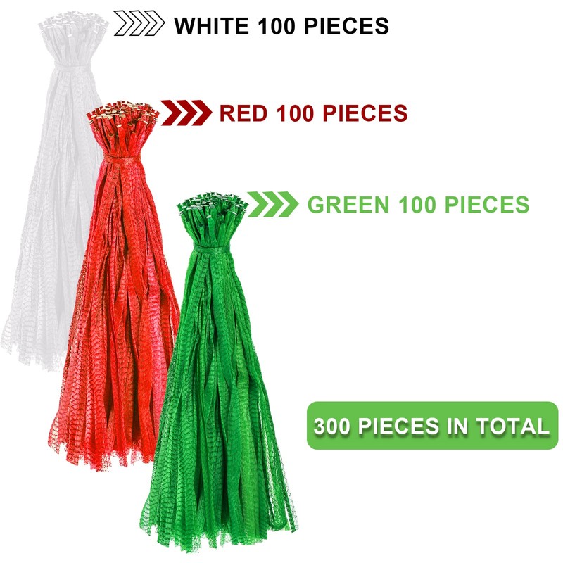 - Sufficient Quantity: Package includes 100 pcs of red, 100 pcs of white and 100 pcs of green nylon mesh bags, 300pcs in total. The length of mesh bags is 23". Width can stretches up to 18". Sufficient quantity to meet your daily life different needs.