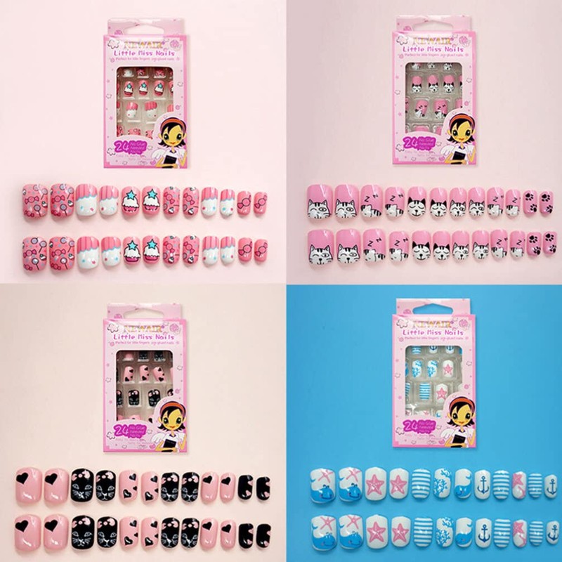 This item is false nail tips, which is specially designed for kids. Made of premium material, safe for kids use. cartoon pattern, ensure its popularity and practicability among kids. Wonderful choice for kids in Christmas, birthday, festival, New Year and much more.