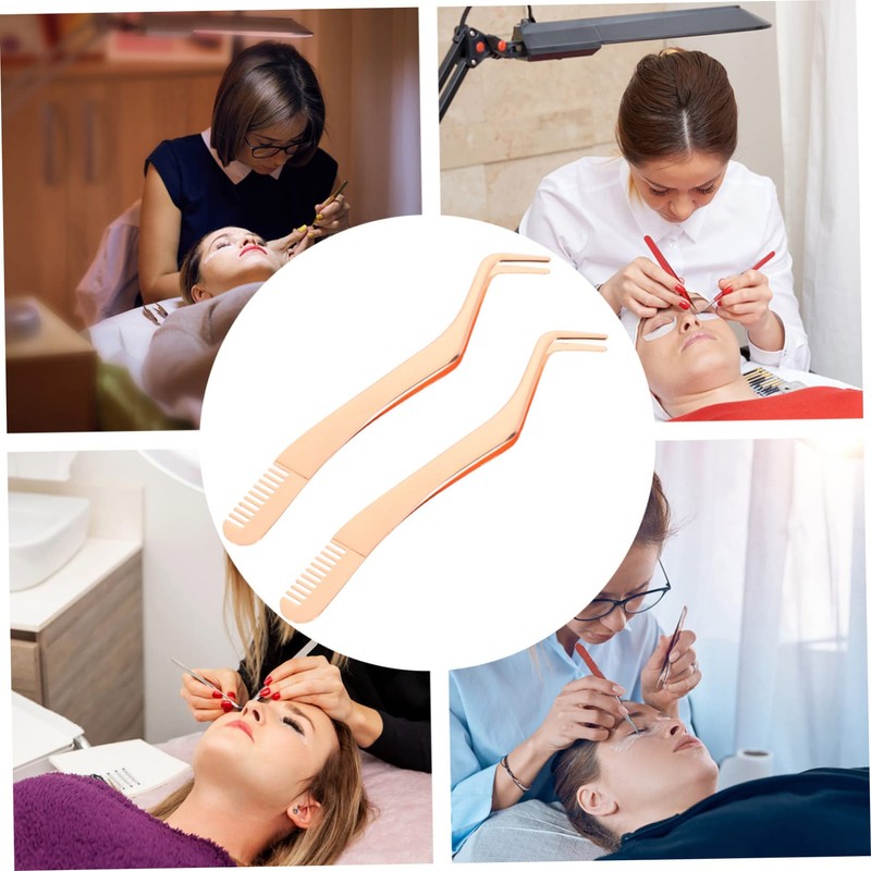 FRCOLOR 2pcs Professional Eyelash Extension Tweezers Comb Lash Tweezers Applicator