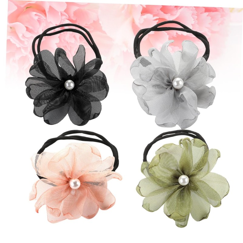 FRCOLOR 4pcs Lace Flower Women Hair Ties Ponytail Holders Stretch Hair Rings ...
