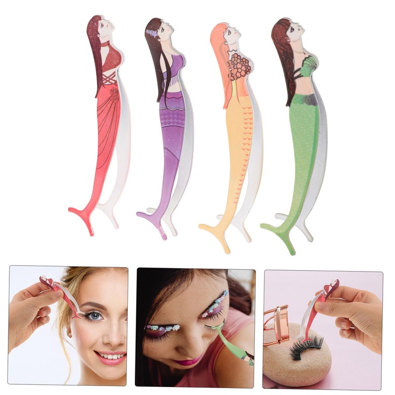 FRCOLOR 4pcs Mermaid Design Lash Tweezers for Easy False Eyelash Application Ergonomic and Durable Eyelash Clamp Tools
