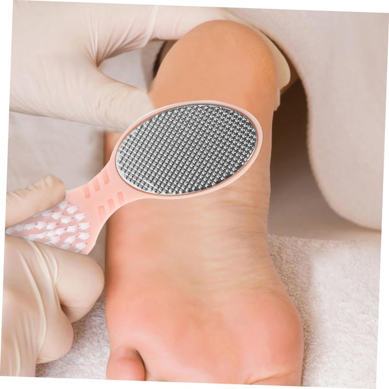 brush tool for feet Enjoy the foot therapy at home.handheld foot trimmer tool In just a few minutes, all the calluses on your feet will be removed.foot file scrubber The Foot File is made of ,stainless steel,PP,pumice stone materials, washable and reusable.foot file It is gentle on your skin and can safely remove dead skin from your feet.4-in-1 feet scrubber Stainless steel file surface can remove old skin without hurting feet