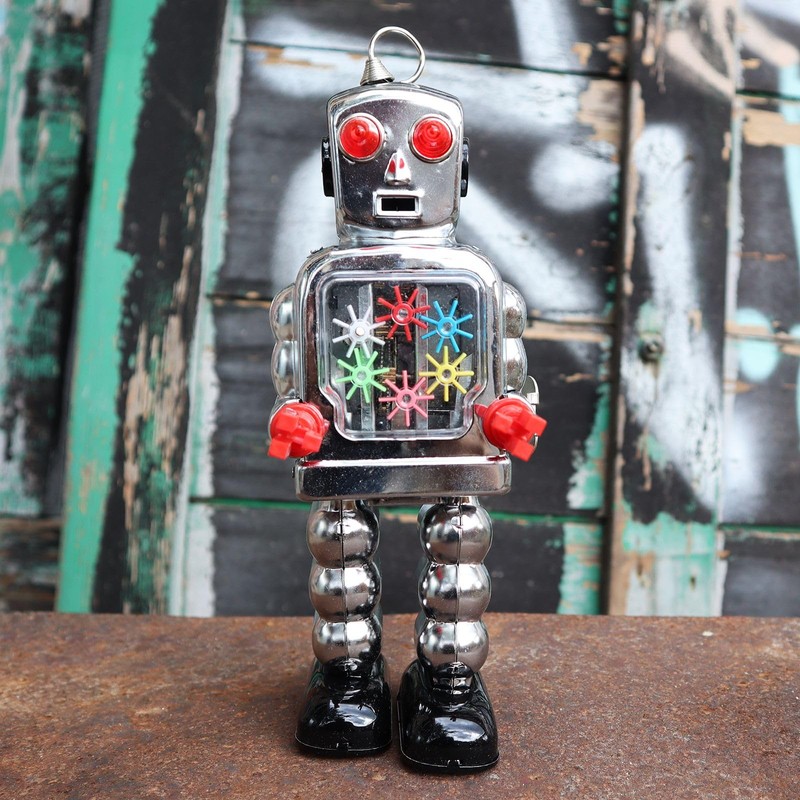 Freak Scene Superfreak Robot - High Wheel Robot - Silver - Tin Robot - Retro Tin Toy