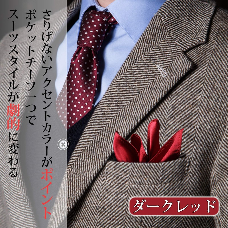 Freate Pocket Square, 100% Silk, Large, 13.8 x 13.8 inches (35 x 35 cm), Includes Folding Guide (English Language Not Guaranteed), darkred, 35×35cm