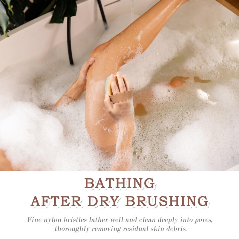 - Effective Bath Time: Start your shower after dry brushing. The soft bristles lather well and clean deep into pores to thoroughly remove residual skin debris and dirty buildup