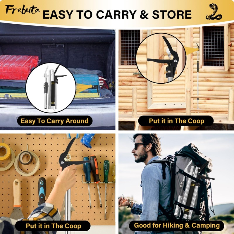 - 【Multi-scene & Multi-people】Folding snake grabber tool suitable for use at home in yards, ponds, chicken coops, garages as well as camping, outdoor fishing, climbing, hiking, etc. Snake sticks and grabbers suitable for men, women, young and old, beginners, professional snake handlers and so on.