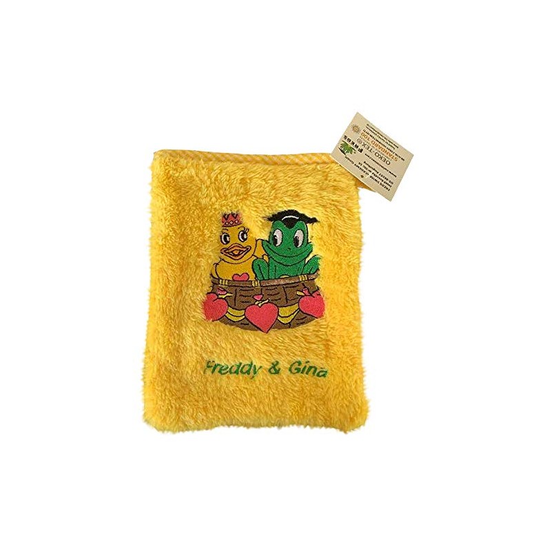 - With cute motif embroidered with Fred the Frog and Gina the Duck