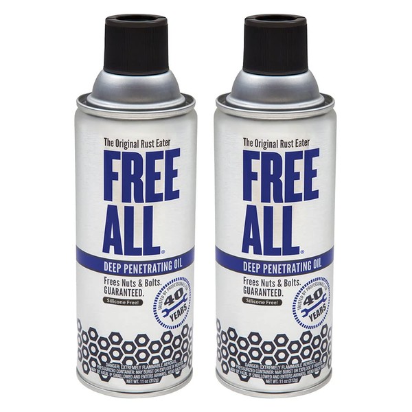 Free All Rust Eater Deep Penetrating Oil, 11 oz Aerosol – Loosens Rusted Bolts, Nuts, Pipe Connections & Locks – Industrial-Grade Rust Remover, Silicone-Free, Safe on Paint & Plastic Surfaces, 2-Pack